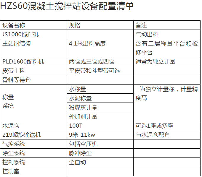 混凝土攪拌站的主要配置清單與價格的重要關系